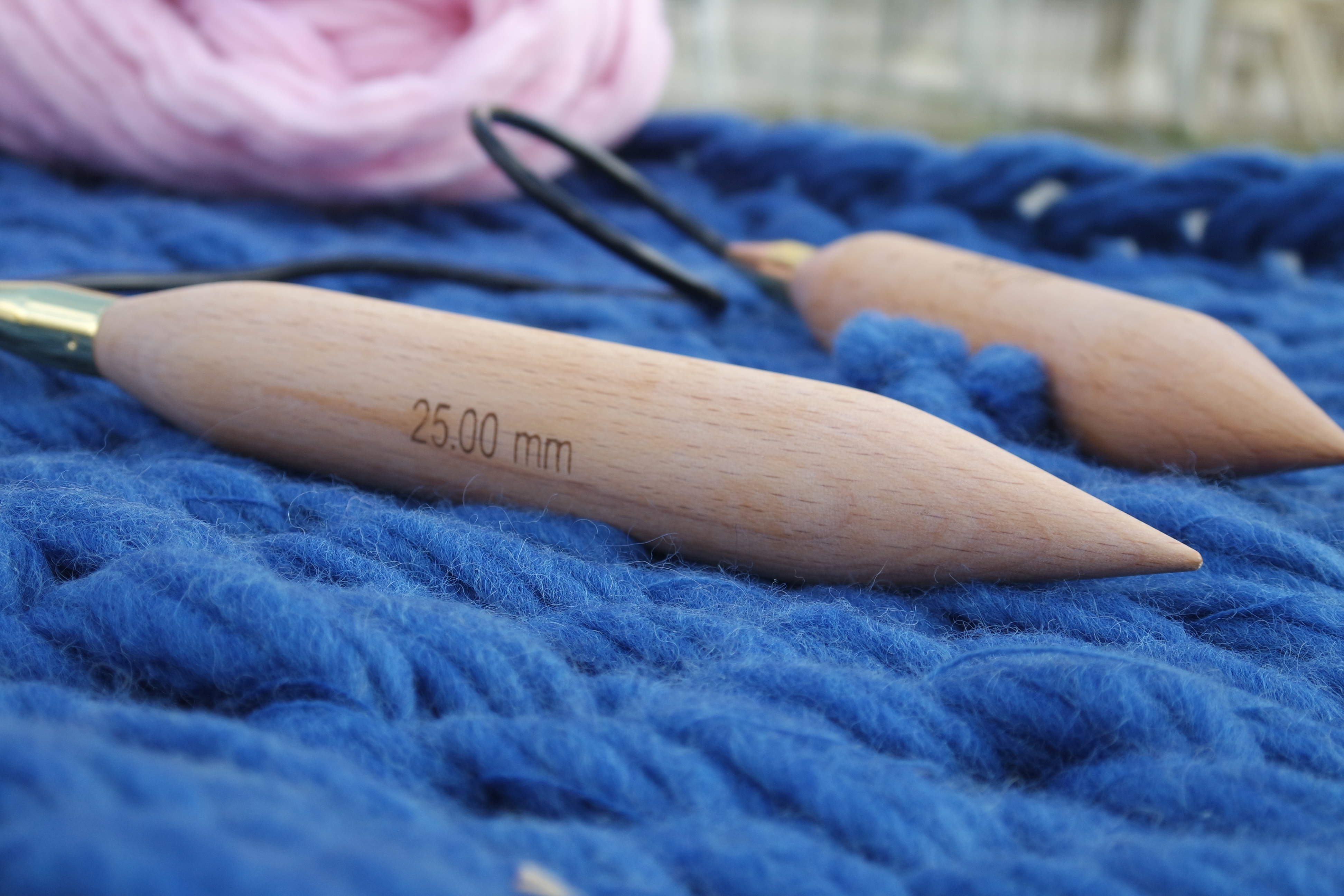 Agulha de tricot circular de alta qualidade da KnitPro. Feitas em bétula, esta agulha circular tamanho XXL é perfeita para tricotar com fios super grossos, ideal para mantas e cobertores. O cabo suporta o peso do cobertor e é muito agradável de tricotar.