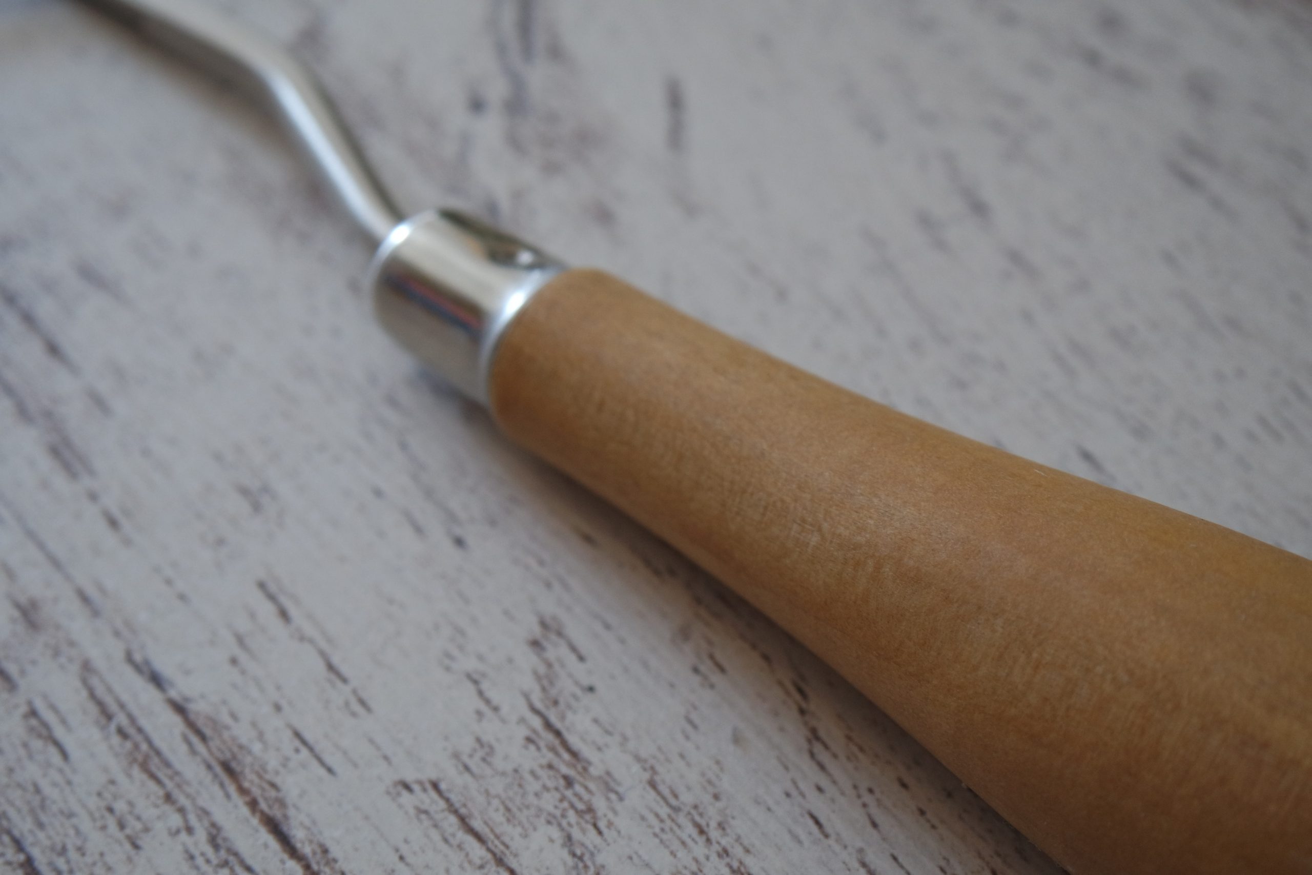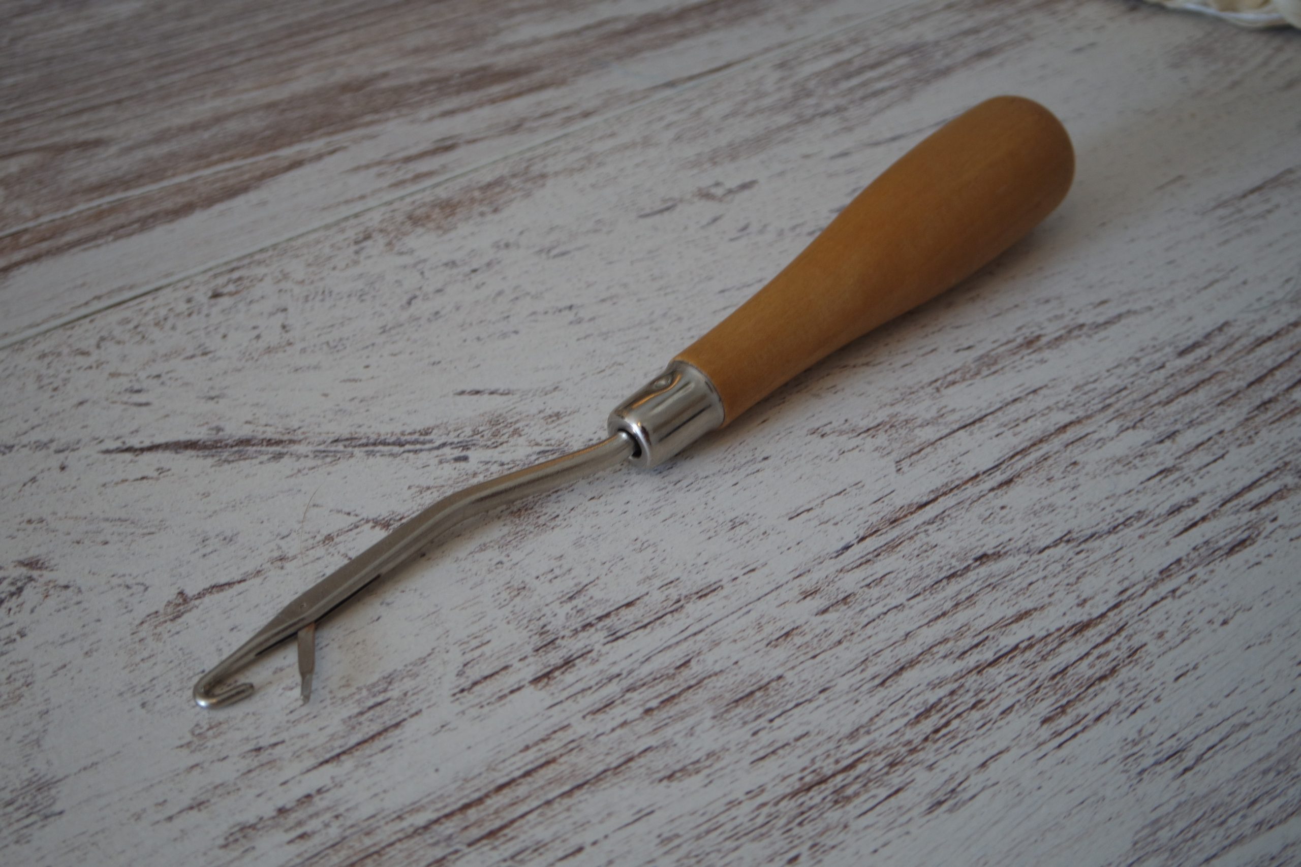 Agulha em gancho metálico com cabo de madeira para uma confortável utilização durante elevados períodos de tempo. Ideal para latch hooking e tecelagem, muito prática quando se trabalha com a Esmirna.