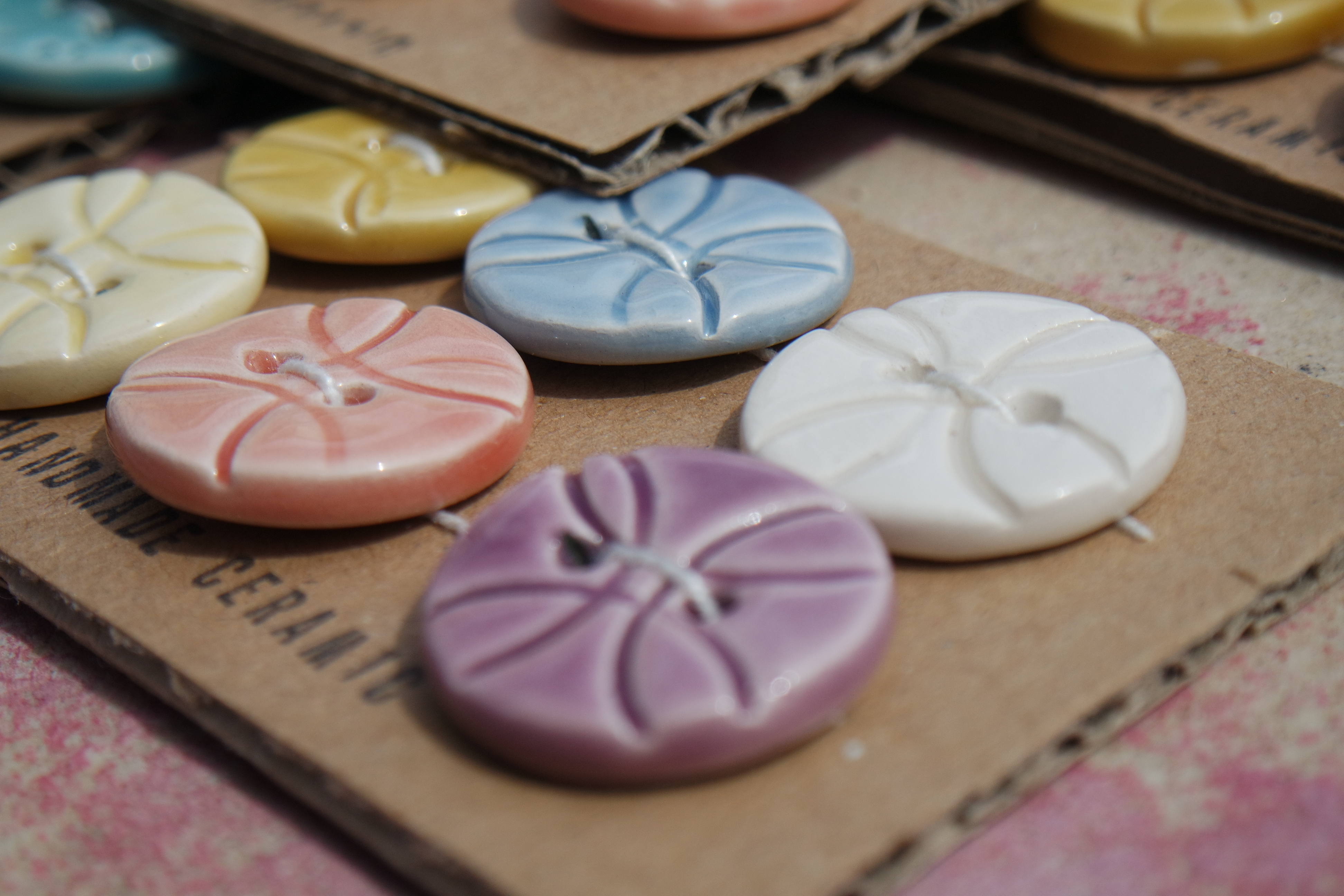 Conjunto de 6 botões cerâmicos feitos à mão com padrões variados e aleatórios. Peças únicas disponíveis em vários tamanhos. Se tiver preferência no tom colocar nas observações.