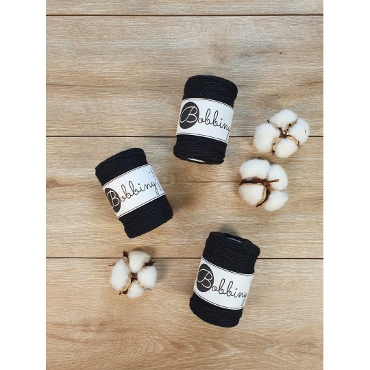 Este fio da Bobbiny é uma corda de algodão 3ply composta por 30 fios individuais divididos em 3 partes de (10cabos cada) e depois enrolados entre si. Esta estrutura resulta numa corda forte, fácil de trabalhar e de desfiar, permitindo obter franjas cheias e estruturadas. É perfeito para pequenos projectos como acessórios e joalheria ou para juntar a peças maiores como um pormenor ou detalhe. Pode também ser usado com outras técnicas, como crochet e tecelagem.