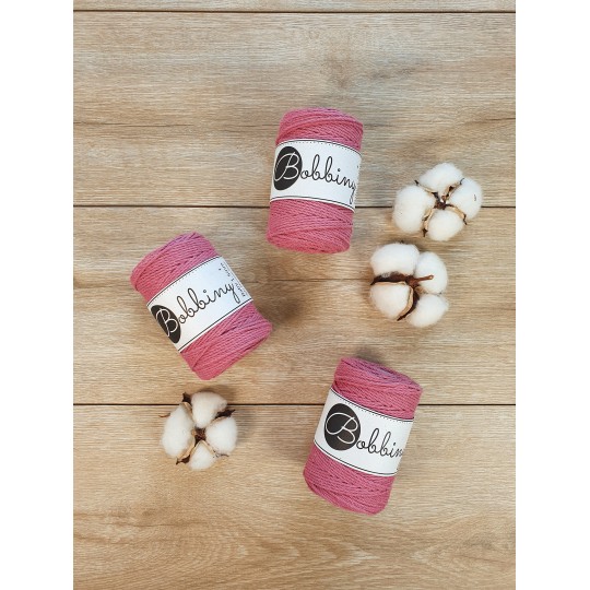 Este fio da Bobbiny é uma corda de algodão 3ply composta por 30 fios individuais divididos em 3 partes de (10cabos cada) e depois enrolados entre si. Esta estrutura resulta numa corda forte, fácil de trabalhar e de desfiar, permitindo obter franjas cheias e estruturadas. É perfeito para pequenos projectos como acessórios e joalheria ou para juntar a peças maiores como um pormenor ou detalhe. Pode também ser usado com outras técnicas, como crochet e tecelagem.