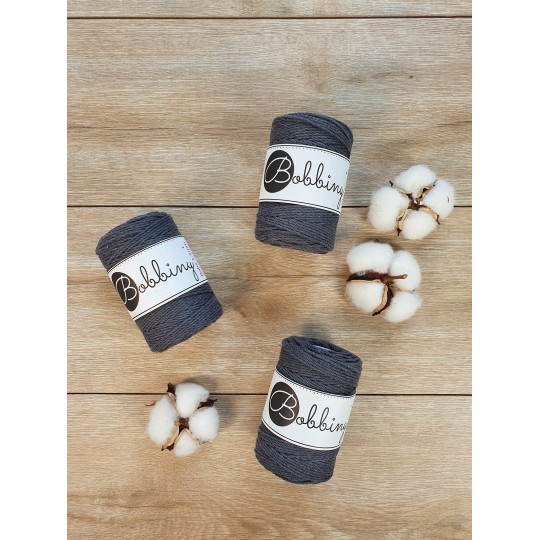 Este fio da Bobbiny é uma corda de algodão 3ply composta por 30 fios individuais divididos em 3 partes de (10cabos cada) e depois enrolados entre si. Esta estrutura resulta numa corda forte, fácil de trabalhar e de desfiar, permitindo obter franjas cheias e estruturadas. É perfeito para pequenos projectos como acessórios e joalheria ou para juntar a peças maiores como um pormenor ou detalhe. Pode também ser usado com outras técnicas, como crochet e tecelagem.