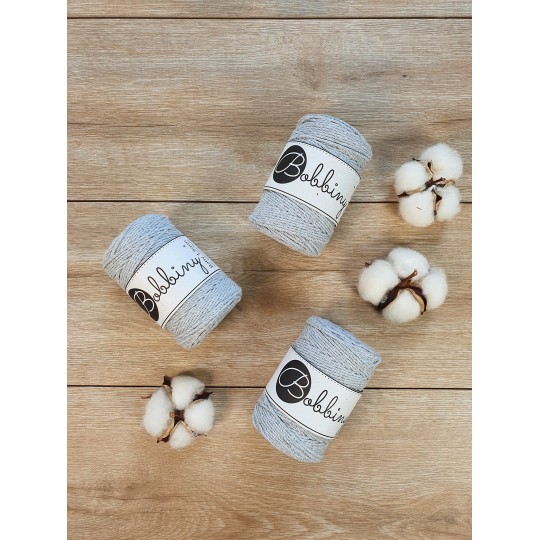 Este fio da Bobbiny é uma corda de algodão 3ply composta por 30 fios individuais divididos em 3 partes de (10cabos cada) e depois enrolados entre si. Esta estrutura resulta numa corda forte, fácil de trabalhar e de desfiar, permitindo obter franjas cheias e estruturadas. É perfeito para pequenos projectos como acessórios e joalheria ou para juntar a peças maiores como um pormenor ou detalhe. Pode também ser usado com outras técnicas, como crochet e tecelagem.