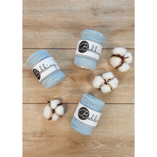 Este fio da Bobbiny é uma corda de algodão 3ply composta por 30 fios individuais divididos em 3 partes de (10cabos cada) e depois enrolados entre si. Esta estrutura resulta numa corda forte, fácil de trabalhar e de desfiar, permitindo obter franjas cheias e estruturadas. É perfeito para pequenos projectos como acessórios e joalheria ou para juntar a peças maiores como um pormenor ou detalhe. Pode também ser usado com outras técnicas, como crochet e tecelagem.