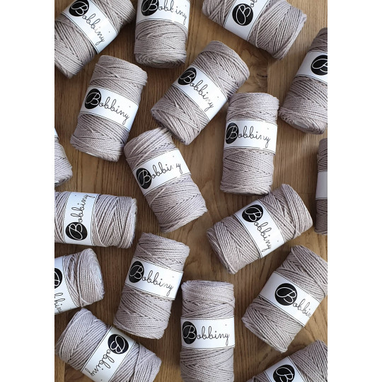 Este fio da Bobbiny é uma corda de algodão 3ply composta por 60 fios individuais divididos em 3 partes de (20cabos cada) e depois enrolados entre si. Esta estrutura resulta numa corda forte, fácil de trabalhar e de desfiar, permitindo obter franjas cheias e estruturadas. É perfeito para fazer decorações festivas, peças centrais e outros projetos decorativos.