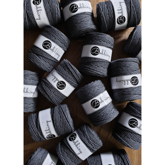 Este fio da Bobbiny é uma corda de algodão 3ply composta por 120 fios individuais divididos em 3 partes de (40cabos cada) e depois enrolados entre si. Esta estrutura resulta numa corda forte, fácil de trabalhar e de desfiar, permitindo obter franjas cheias e estruturadas. É perfeito para fazer decorações festivas, peças centrais e outros projetos decorativos.