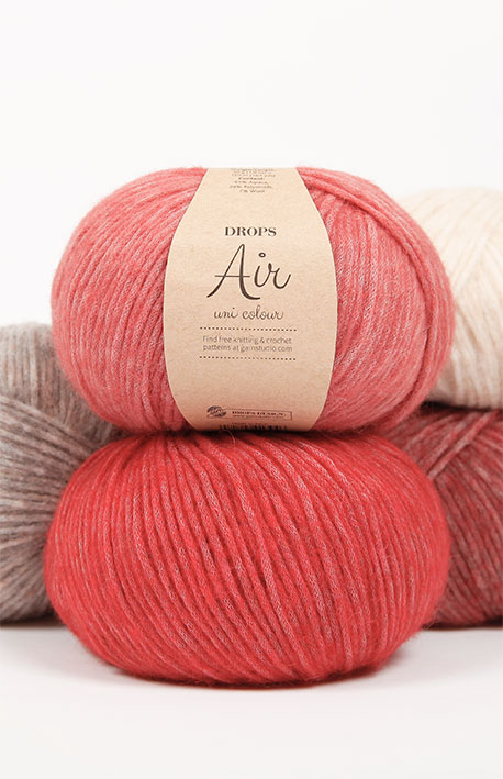 O DROPS Air é um fio arejado com um toque magnífico em contacto com a pele, o que o torna perfeito para acessórios, xailes, pulôveres e casacos tanto em pontos texturados como em pontos com torcidos ou tranças. As peças feitas com o DROPS Air são totalmente hipoalergénicas, o que quer dizer que qualquer pessoa a pode usar!