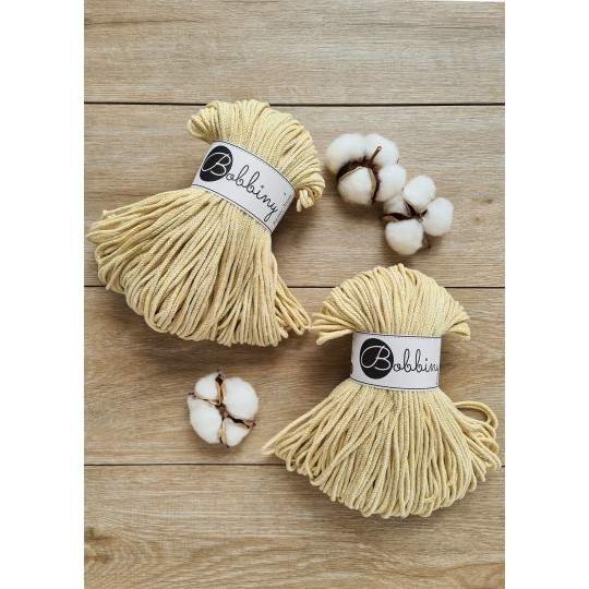 O entrançado da Bobbiny de 3 mm é perfeito para projectos diferentes de Macramé, tecelagem e qualquer arte têxtil. É um fio macio, flexível e durável, com enchimento de algodão no interior.