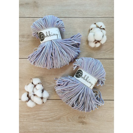 O entrançado da Bobbiny de 3mm é perfeito para projectos diferentes de Macramé, tecelagem e qualquer arte têxtil. É um fio macio, flexível e durável, com enchimento de algodão no interior (alma).