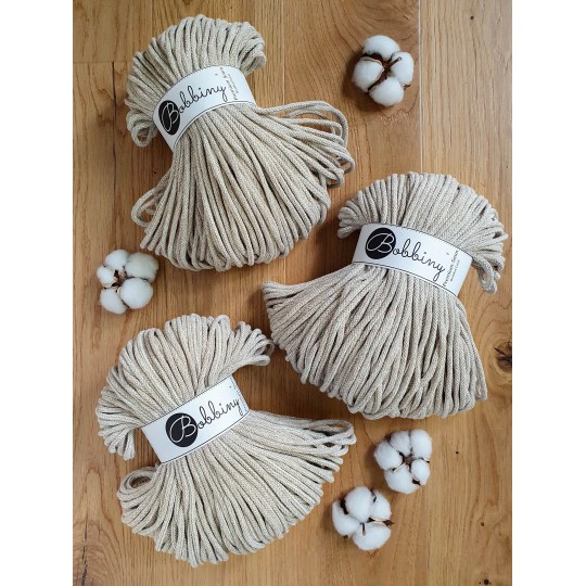 O entrançado da Bobbiny de 5 mm é perfeito para projectos diferentes de Macramé, tecelagem e qualquer arte têxtil. É um fio macio, flexível e durável, com enchimento de algodão no interior.