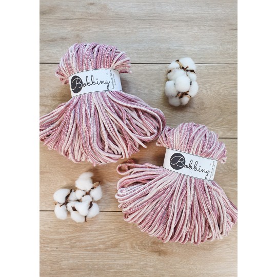 O entrançado da Bobbiny de 5 mm é perfeito para projectos diferentes de Macramé, tecelagem e qualquer arte têxtil. É um fio macio, flexível e durável, com enchimento de algodão no interior.