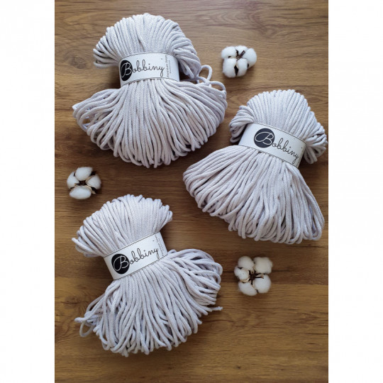O entrançado da Bobbiny de 5 mm é perfeito para projectos diferentes de Macramé, tecelagem e qualquer arte têxtil. É um fio macio, flexível e durável, com enchimento de algodão no interior.