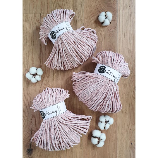 O entrançado da Bobbiny de 5 mm é perfeito para projectos diferentes de Macramé, tecelagem e qualquer arte têxtil. É um fio macio, flexível e durável, com enchimento de algodão no interior.