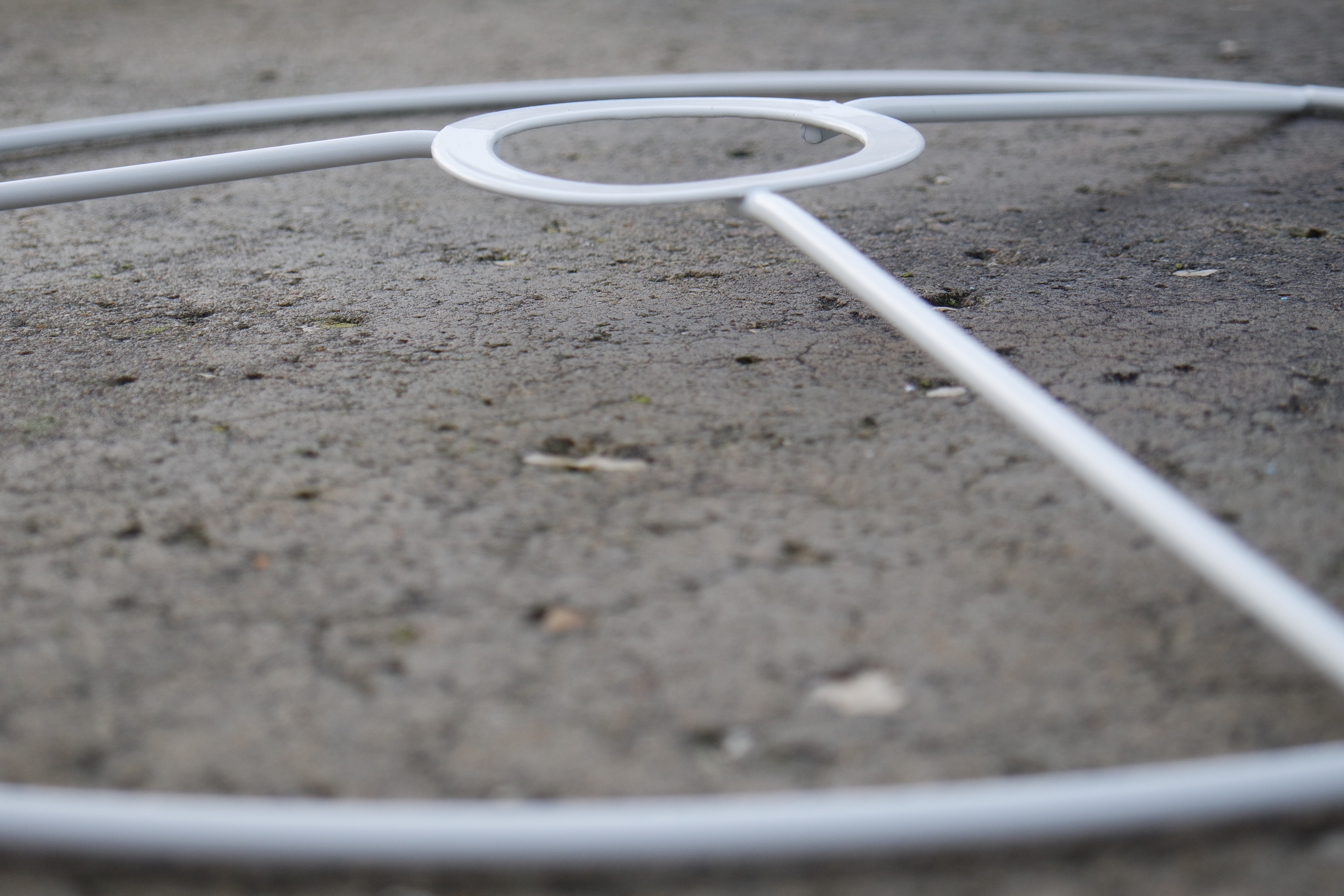 Estrutura metálica branca, ideal para fazer candeeiros em macramé ou similiares. Disponível em dois tamanhos
