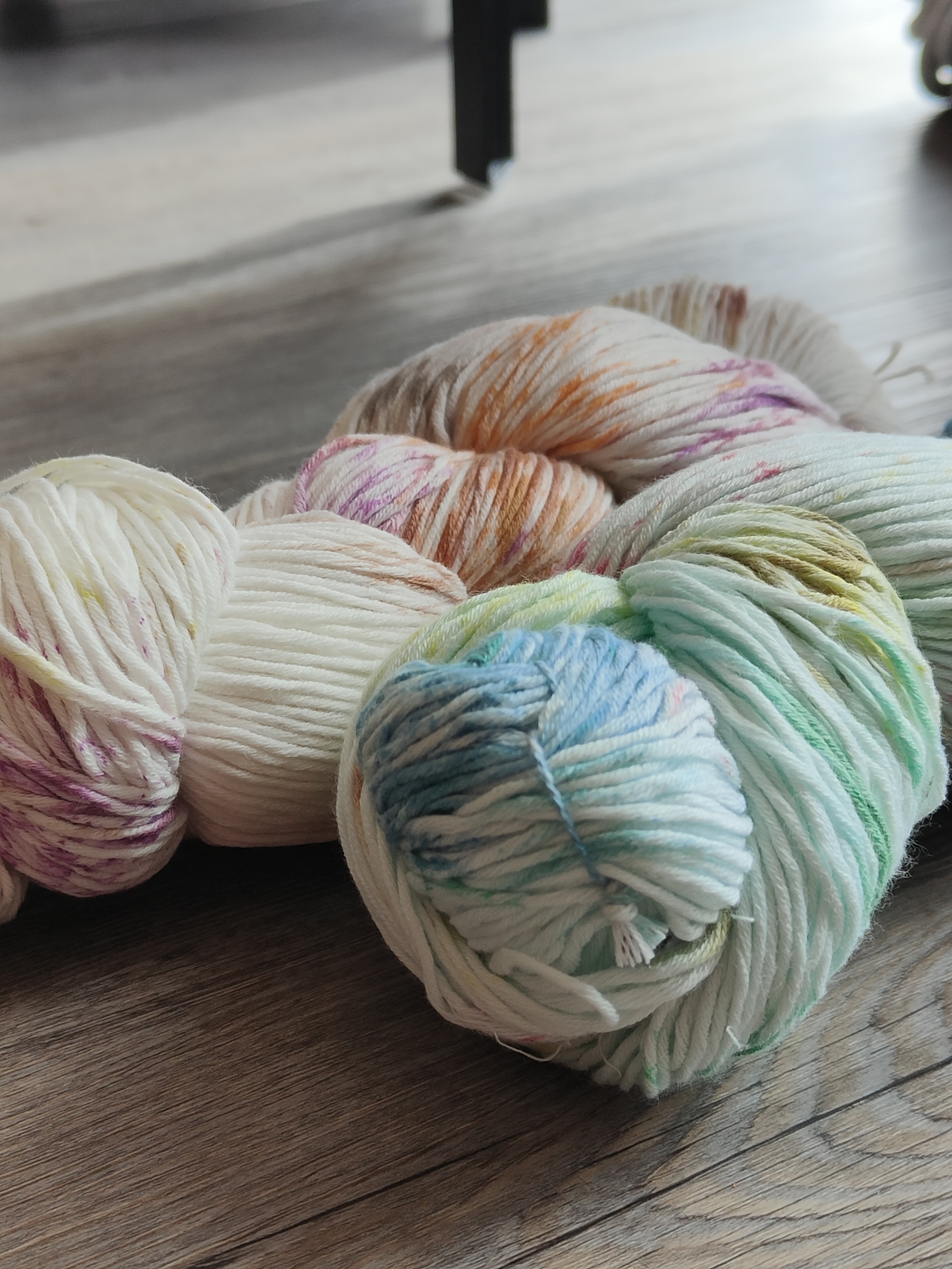 Fio de 100% algodão tingido à mão, ideal para peças de verão únicas, cheias de cor e personalidade. Muito macio e fácil de trabalhar. Devido à natureza artesanal deste fio, as cores e os padrões podem variar de lote para lote, considere adquirir a quantidade necessária para o seu projeto.