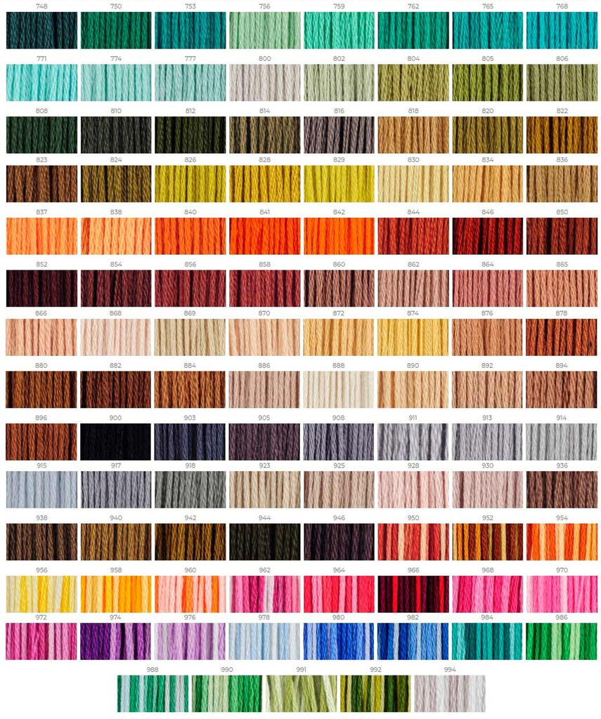 A meada de seis fios de Maxi Mouline é indicada para bordado em ponto cruz e outros tipos que exigem um fio mais delicado. É feito com 100% de algodão egípcio penteado e mercerizado. A cartela inclui 301 cores firmes e intensas que dão vida a qualquer bordado.