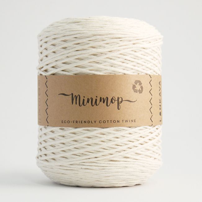 O Minimop Cotton Twine é um fio de torcido simples, especialmente adequado para a prática de macramé que também pode ser usado para crochê, malha,tecido ou para a teia do tear. É um fio fino feito de algodão reciclado, misturado com poliéster para maior durabilidade.