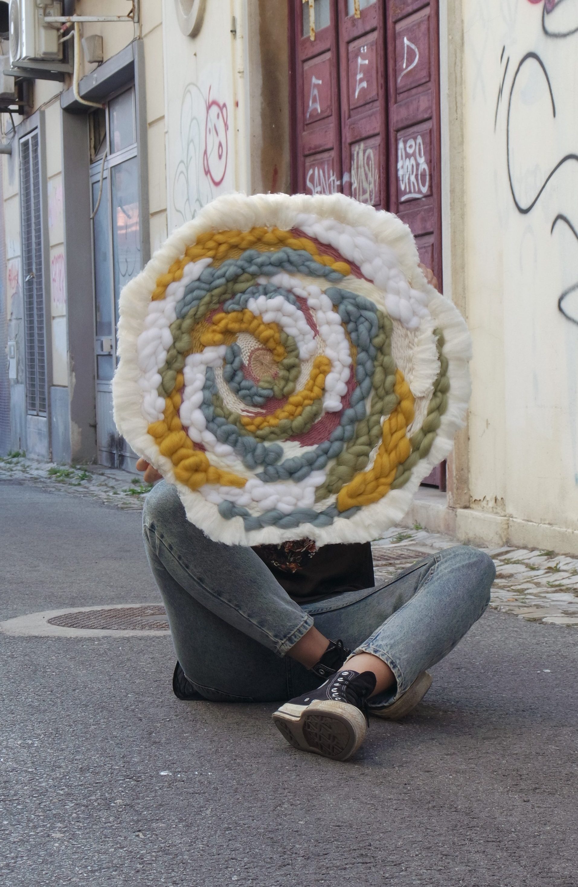 Irreverente e texturizado, este original painel circular mistura vários materiais e é a peça perfeita para qualquer ambiente, seja uma sala ou um quarto. Um verdadeira obra de arte que se pode tocar. Feitas inteiramente à mão, nenhuma peça é igual a outra. Também fazemos por medida, entre em contacto connosco sobre aquela peça com que sempre sonhou.