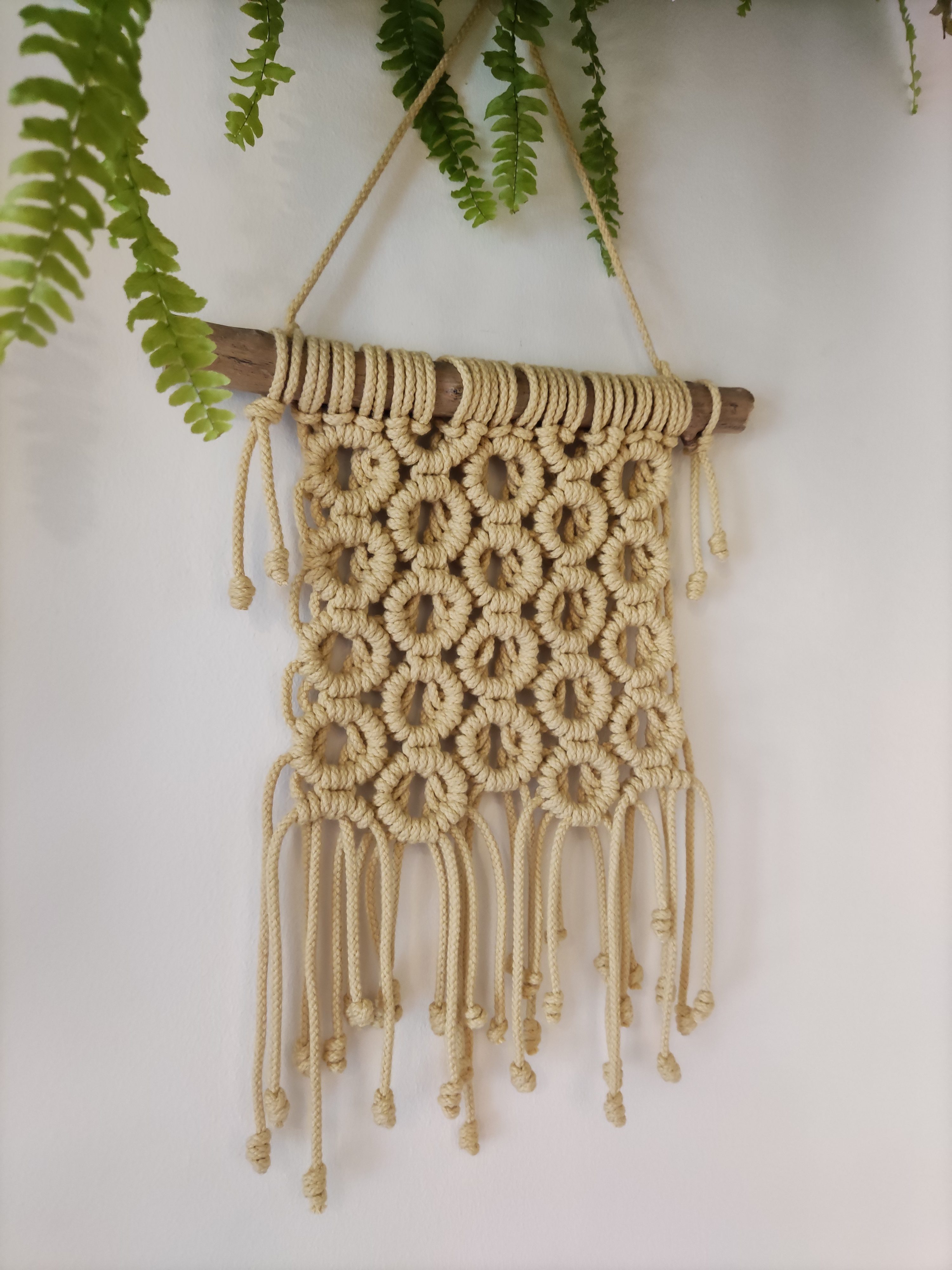 Este mini painel com uma técnica circular única é a peça perfeita para qualquer ambiente de casa, difícil será escolher onde colocar. Os círculos feitas com o fio entrançado são diferentes de todas as outras peças.
