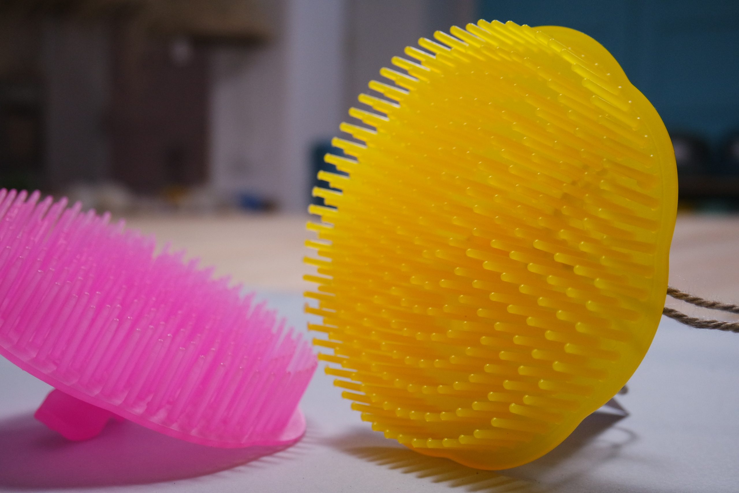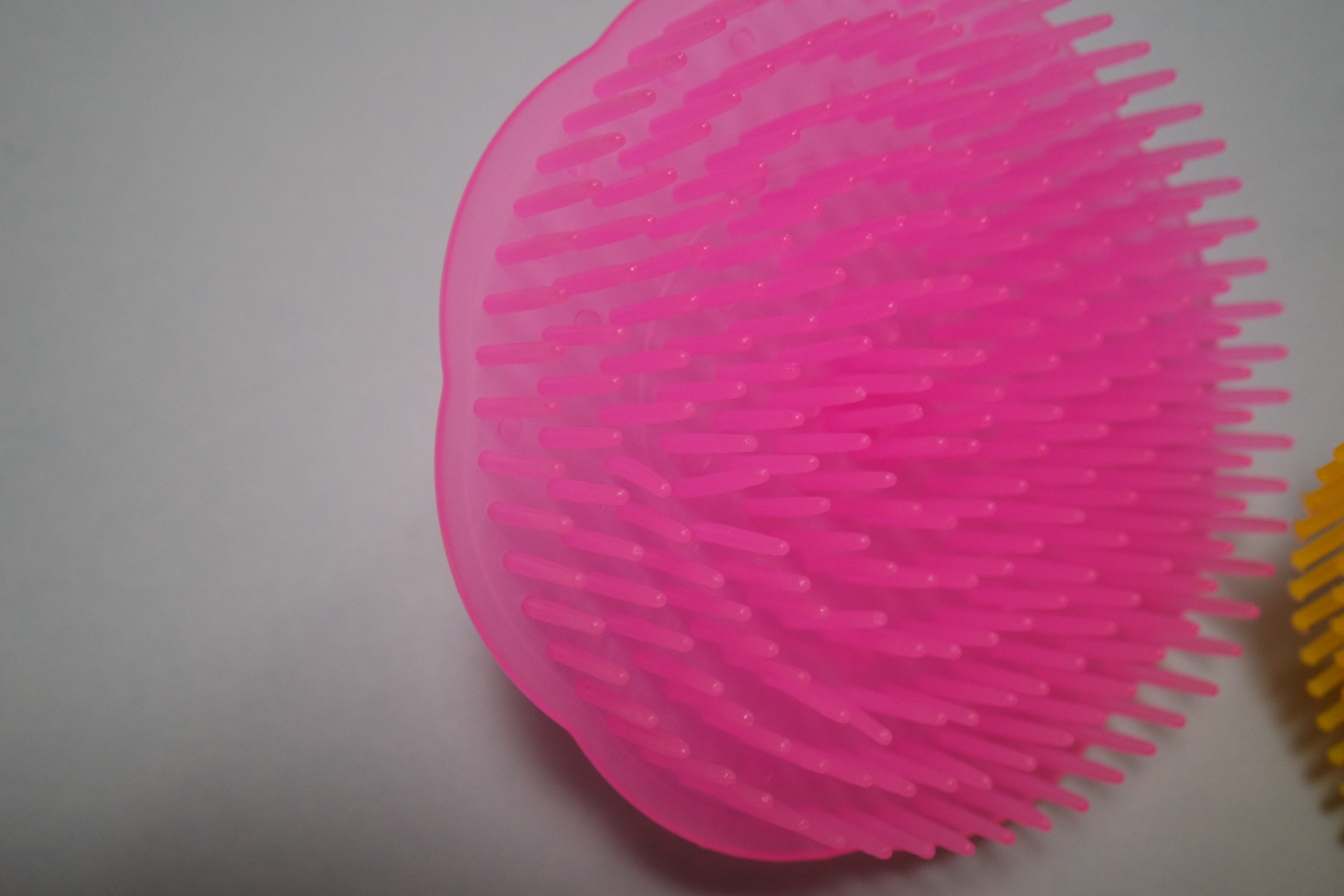 Pente em plástico para desfiar mais facilmente os fios que finalizam a peça.