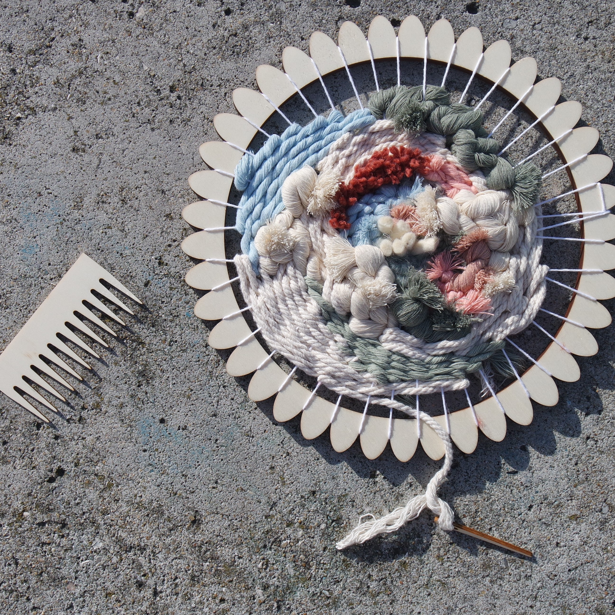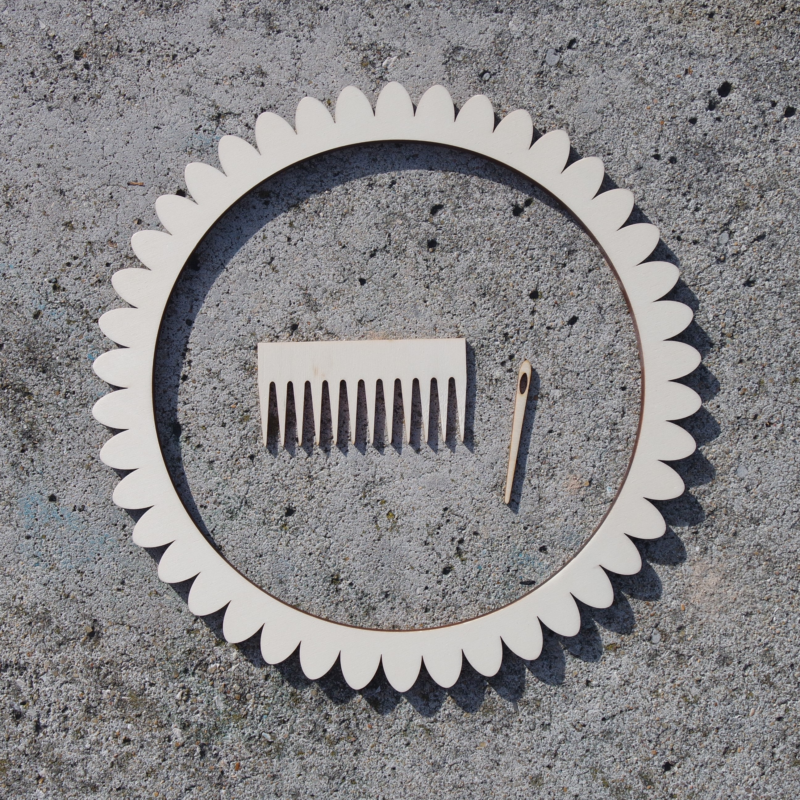 O tear circular é o acessório perfeito para criar peças únicas e cheias de personalidade. Feito em contraplacado de 6mm, é muito resistente e permite ser reutilizado. Inclui pente e agulha.