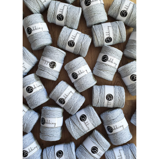O cordão de Macramé da Bobbiny de 5mm é um cordão de algodão de torção única composto por 112 pequenos fios. É perfeito para Macramé, tecelagem e qualquer arte têxtil. É super macio, suave e dá para desfiar facilmente.