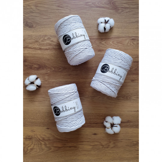 O cordão de Macramé da Bobbiny de 5mm é um cordão de algodão de torção única composto por 112 pequenos fios. É perfeito para Macramé, tecelagem e qualquer arte têxtil. É super macio, suave e dá para desfiar facilmente.