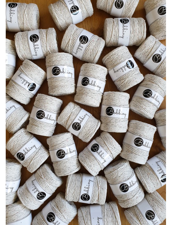 O cordão de Macramé da Bobbiny de 5mm é um cordão de algodão de torção única composto por 112 pequenos fios. É perfeito para Macramé, tecelagem e qualquer arte têxtil. É super macio, suave e dá para desfiar facilmente.