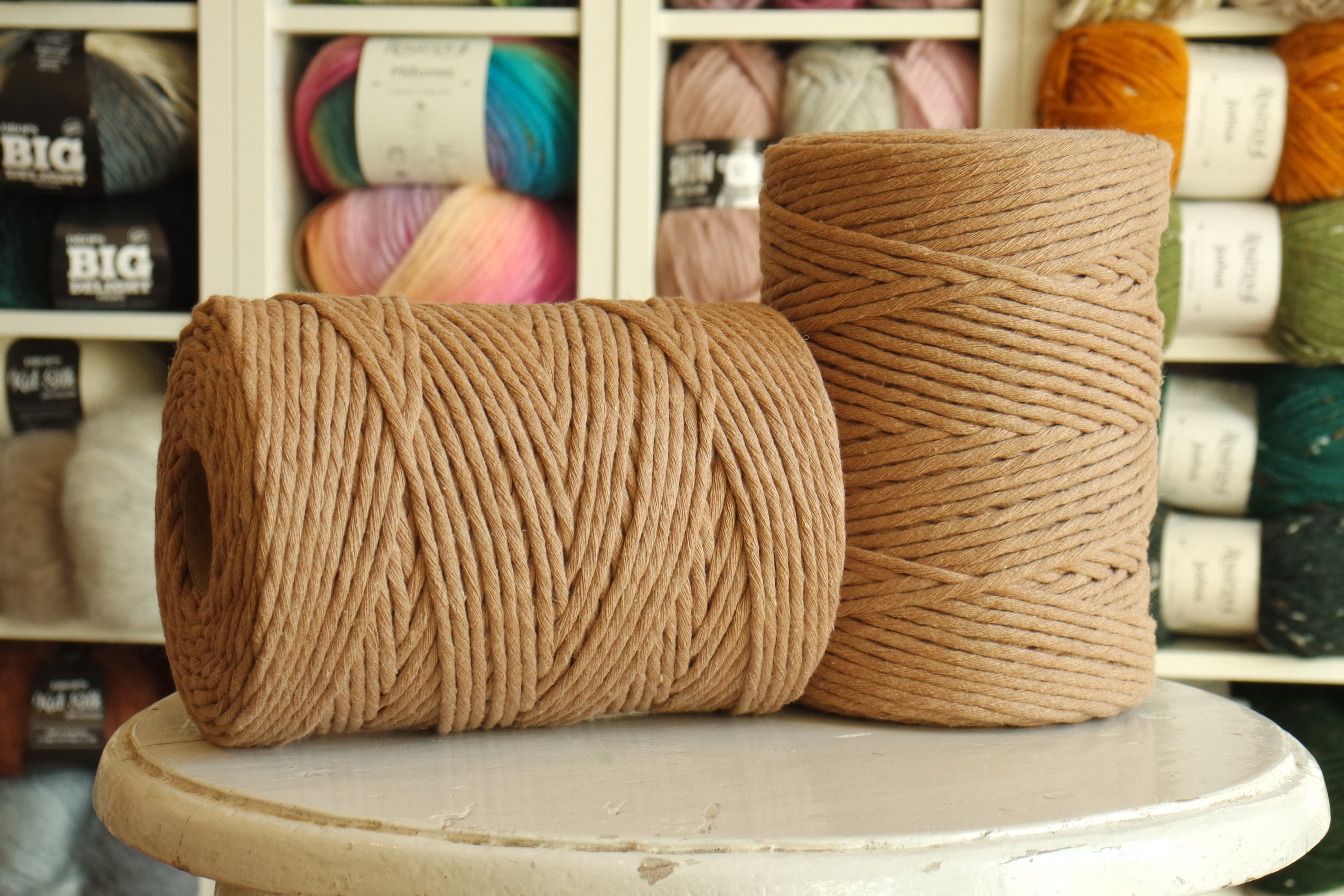 Fio torcido desfiável com aparência rústica feito de algodão reciclado. Fio extremamente suave e resistente, perfeito para uma variedade de projectos de decoração, sendo muito utilizado para macramé e tricot, crochet, tecelagem e numa grande variedade de manualidades. Feito em Portugal.